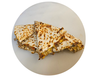 Grilled chicken, cheddar cheese on a toasted 12 inch tortilla.